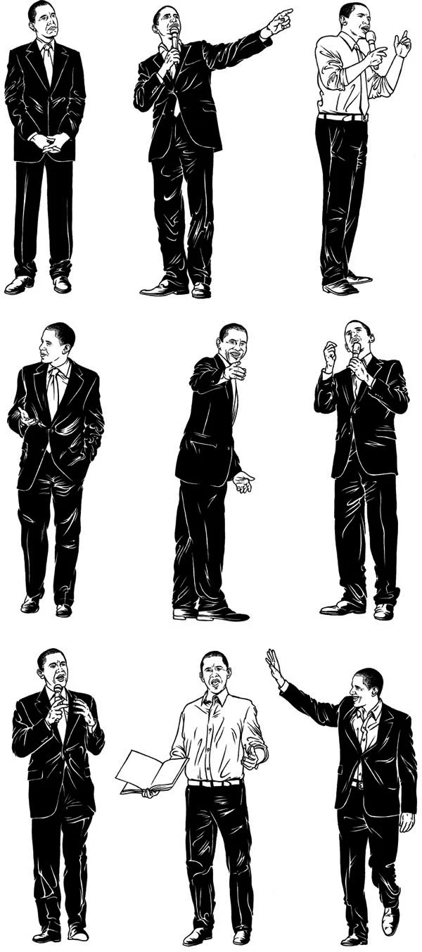 Portrait illustrations of Barack Obama for