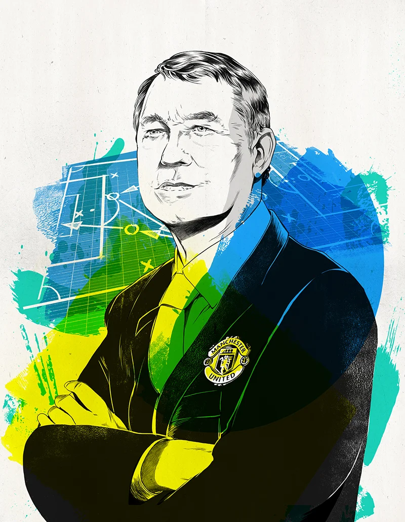 Portrait of legendary Manchester United coach Alex Ferguson for